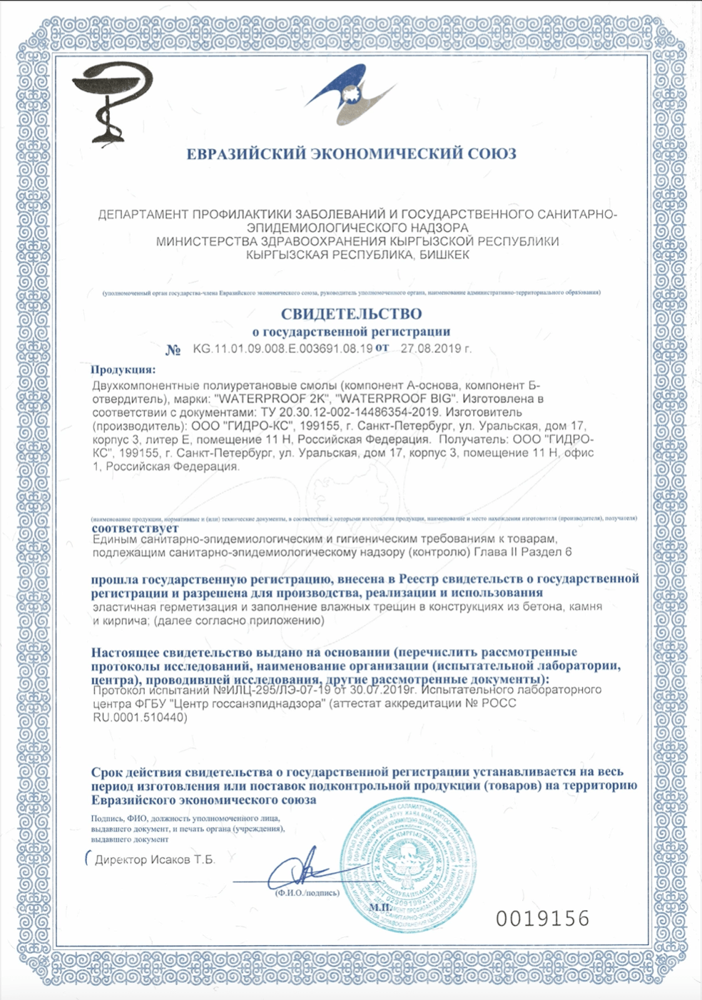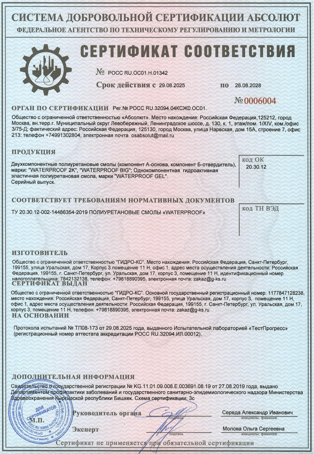 Двухкомпонентная полиуретановая смола WATERPROOF 2K